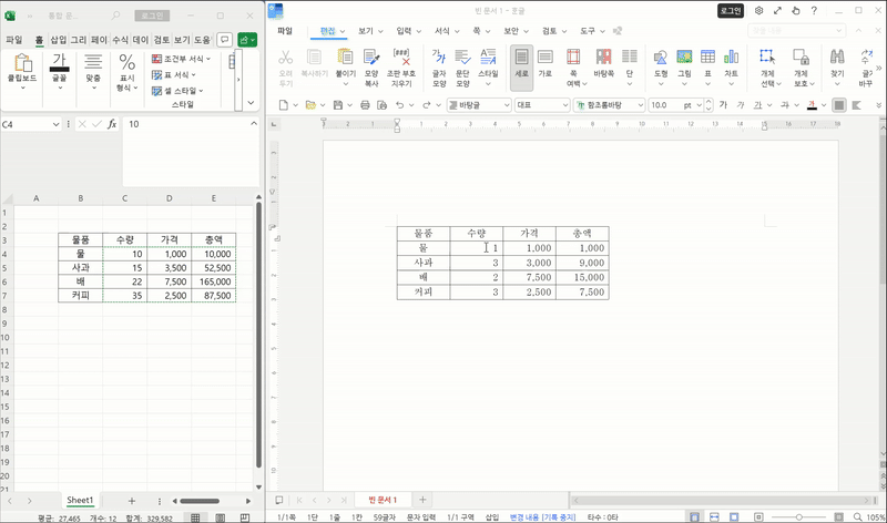 업무 특성상 엑셀 표를 한글문서에 붙여넣을 일이 많다.
